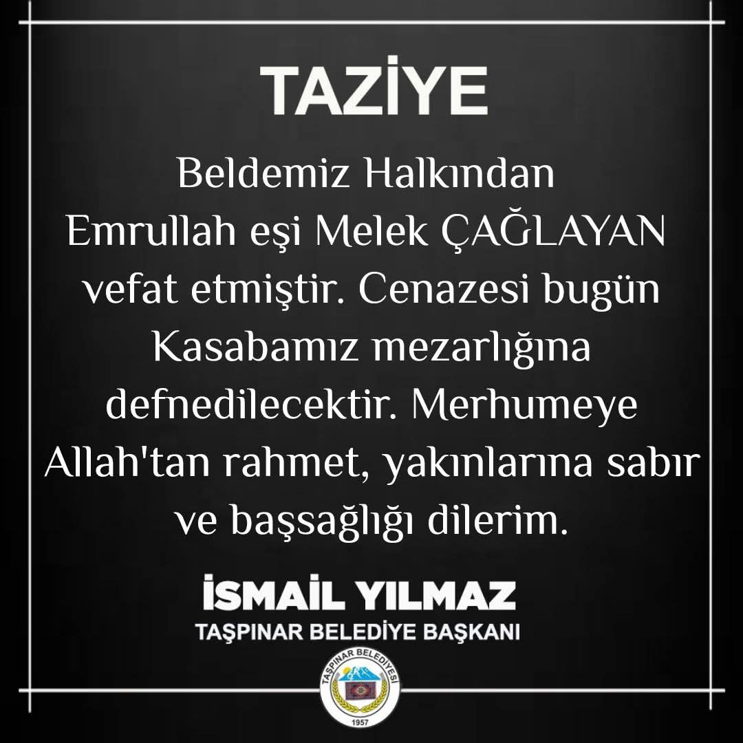 Melek ÇAĞLAYAN Vefat Etmiştir